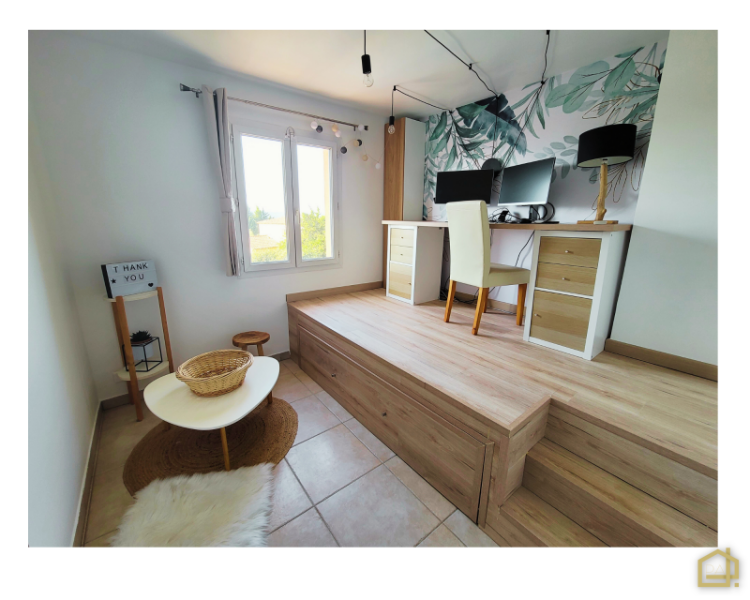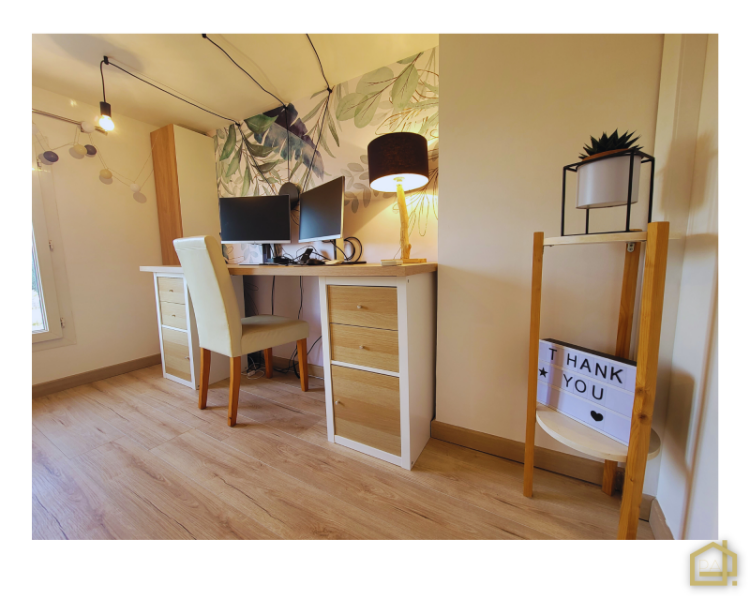 Cette configuration transforme la chambre en un espace de télétravail élégant et pratique, parfaitement adapté aux besoins actuels.
