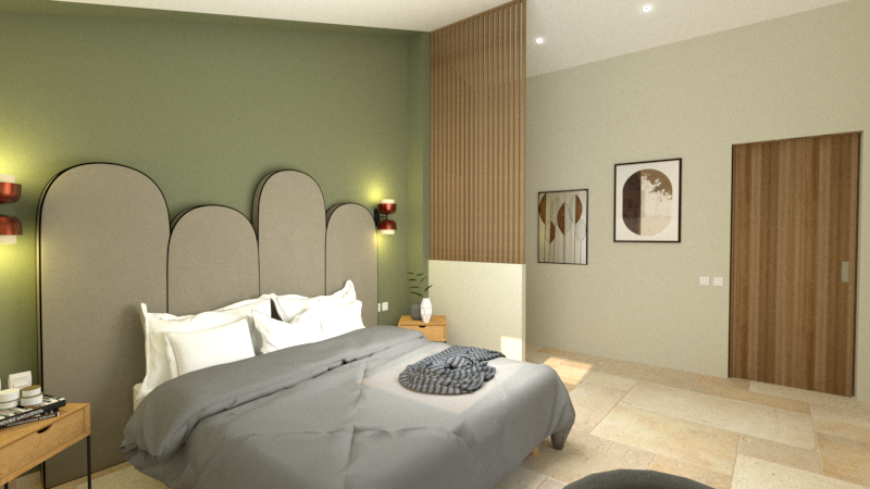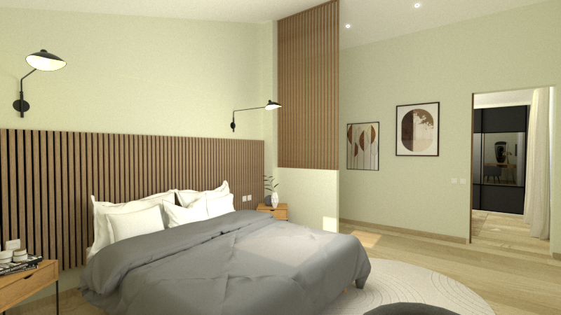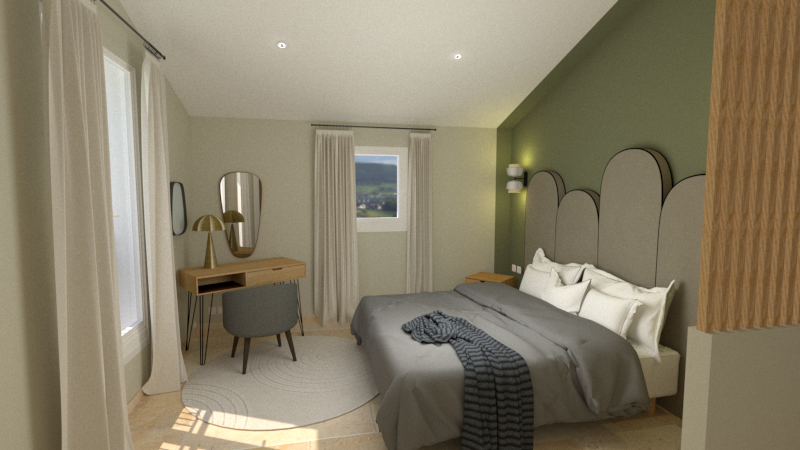 Pour faciliter la prise de décision, je propose la création de plans et rendus 3D photoréalistes. Cette approche permet de visualiser les volumes, les couleurs, les matériaux et l’agencement du mobilier, afin de se projeter avec précision dans la future suite parentale avant le début des travaux.