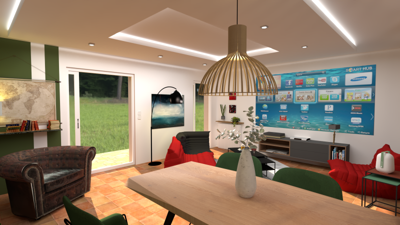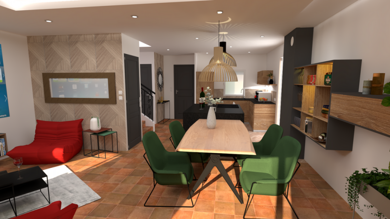 Les baies vitrées à galandage, installées côté jardin, apportent une réelle plus-value à la maison : elles effacent les limites entre intérieur et extérieur, laissant entrer la nature dans l’espace de vie.