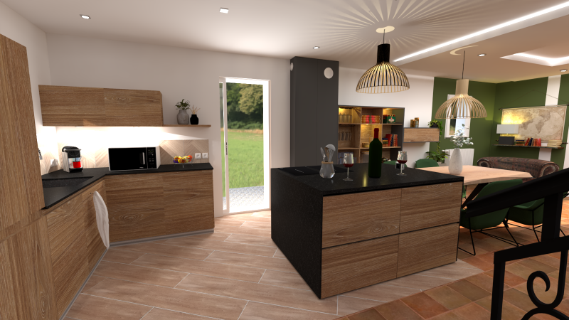 La pièce maîtresse de ce nouvel espace ? Un îlot central de cuisine, à la fois fonctionnel et convivial, qui structure l’ensemble et devient le cœur battant de la maison.