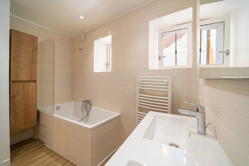 Située dans une charmante maison de village près d’Aix-en-Provence, cette salle de bain a bénéficié d’une rénovation complète mêlant modernité, authenticité et optimisation de l’espace.