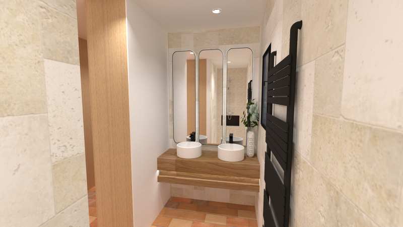 Pour chaque élément, des plans 2D et rendus 3D ont été réalisés, permettant de visualiser l’agencement final avant le chantier et d’optimiser chaque décision.