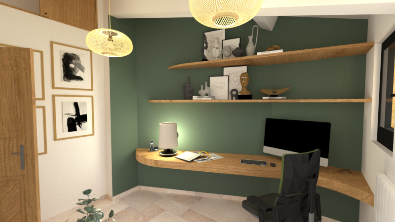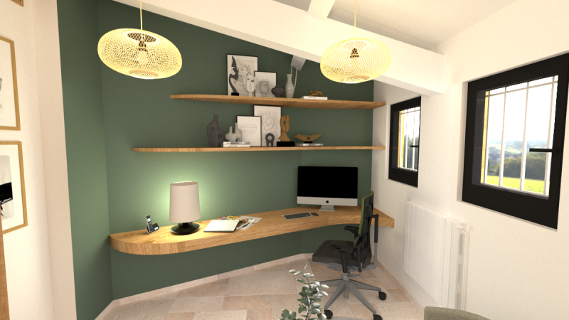 Installé côté fenêtres, le bureau profite pleinement de la lumière naturelle.