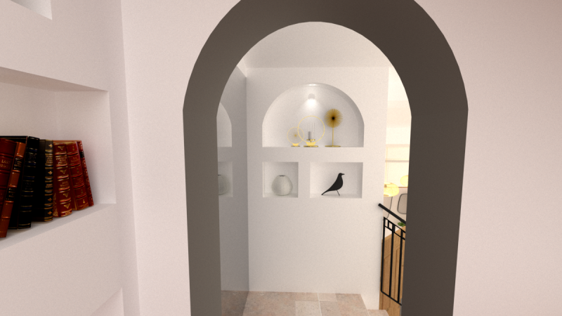 Des niches décoratives ont été créées au-dessus des WC, reproduisant la forme des arches existantes. Elles apportent du charme et permettent d’optimiser un espace perdu.